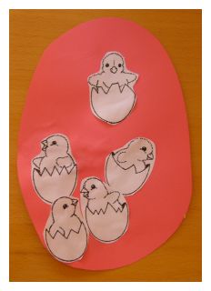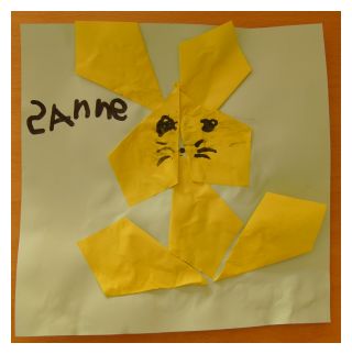 Onderstaande knutsels zijn gemaakt door mijn peuter van 2. Voor kleuters kun je het natuurlijk nog moeilijker maken door ze zelf de vormen uit te laten knippen of prikken. |