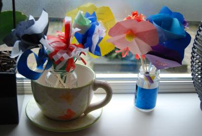Bloemen kun je heel leuk maken door te vouwen, sjablonen of rondjes