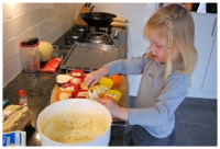 Kleuters vinden het uitdagend om grote-mensen dingen te doen. Koken is er daar een van. Wist je dat je kind onbewust veel kan leren van het samen koken? Enkele dingen die je kind leert of verder ontwikkelt zijn: tellen, wegen, vergelijken, begrippen (meer, minder, evenveel), smaak herkennen, het geheugen trainen, leert groeperen, fijne motoriek, volgorde geheugen, concentratie,